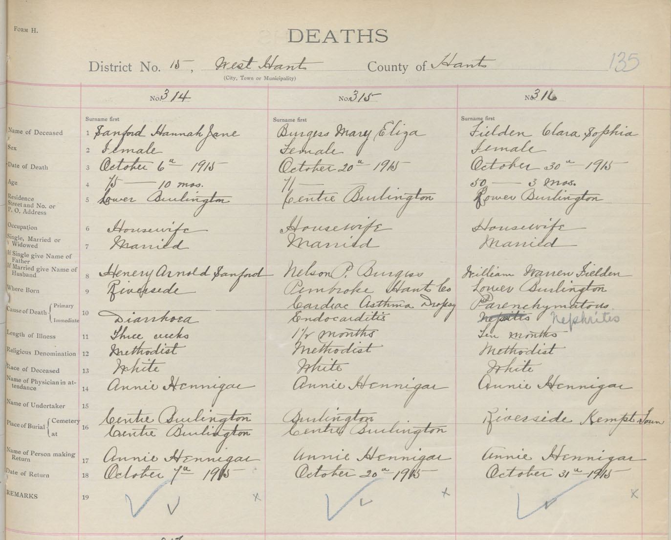 Female Death Registration: Year: 1915 book: 36 page: 135 number: 316