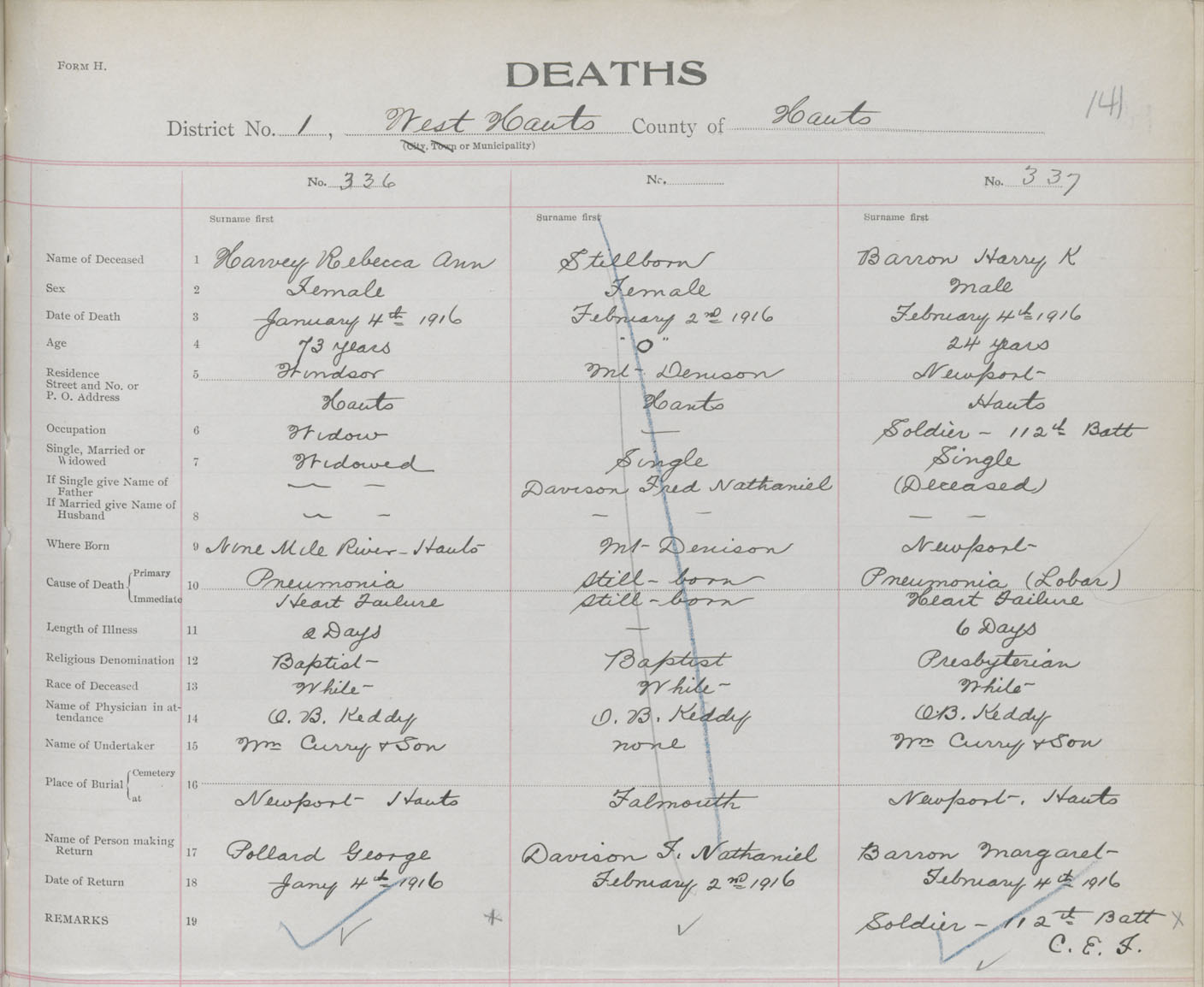Male Death Registration: Year: 1916 book: 36 page: 141 number: 337