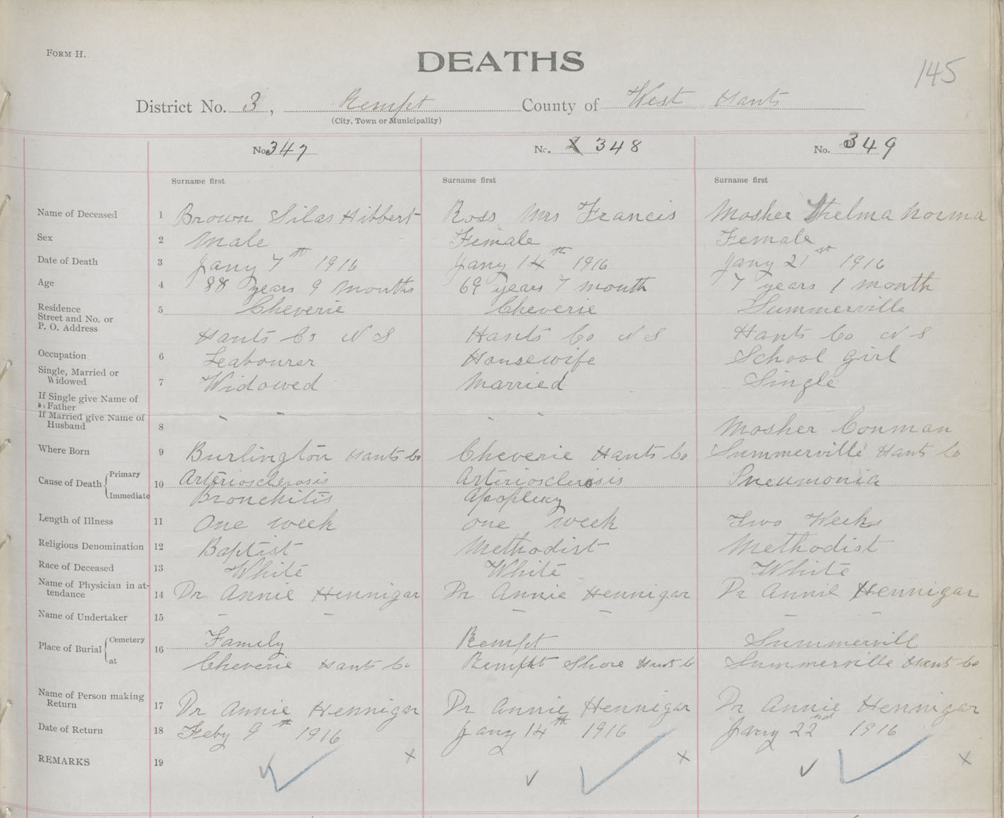 Female Death Registration: Year: 1916 book: 36 page: 145 number: 349