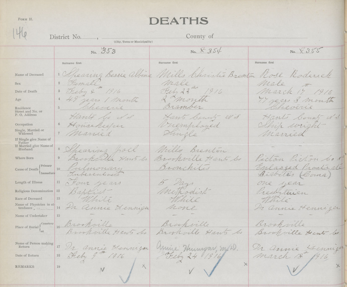 Male Death Registration: Year: 1916 book: 36 page: 146 number: 355