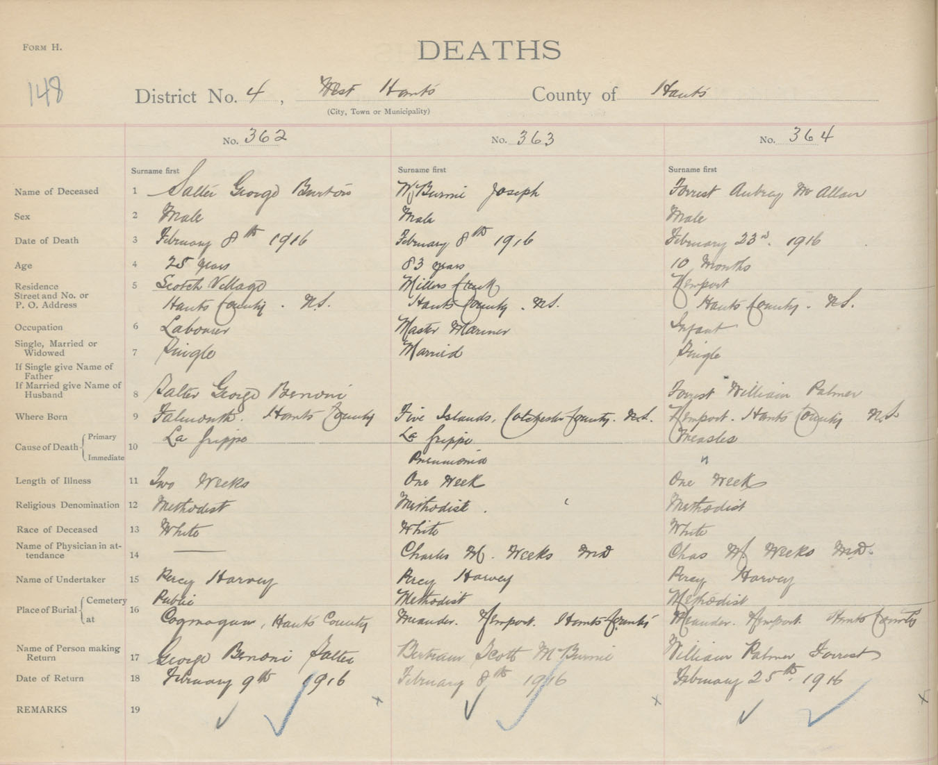 Female Death Registration: Year: 1916 book: 36 page: 148 number: 364