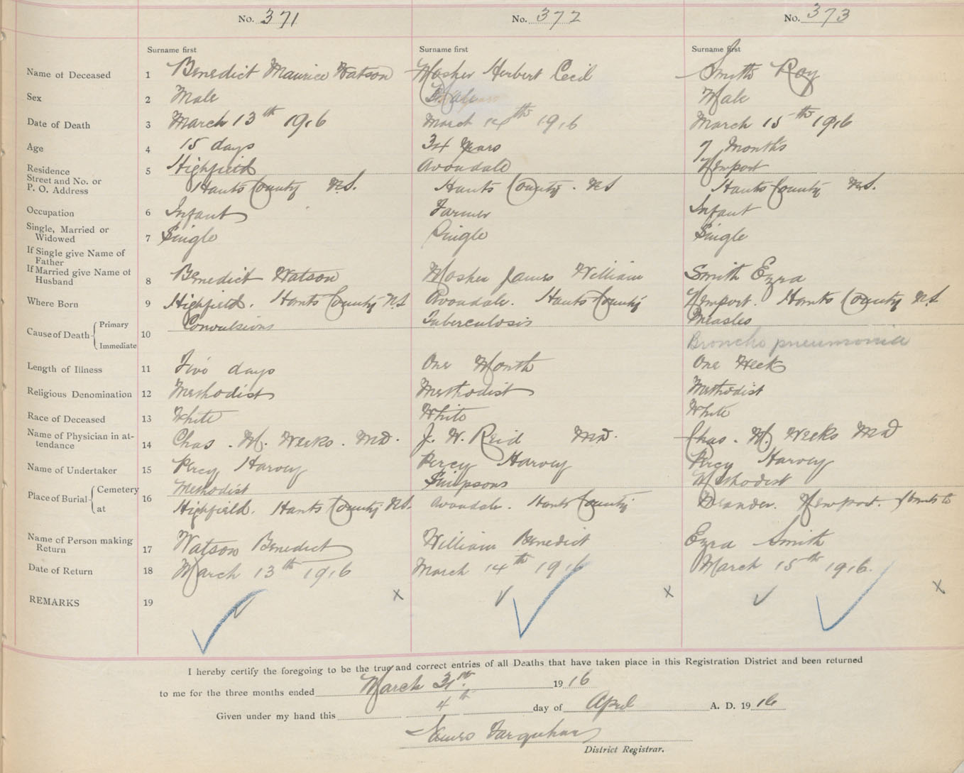Male Death Registration: Year: 1916 book: 36 page: 149 number: 373