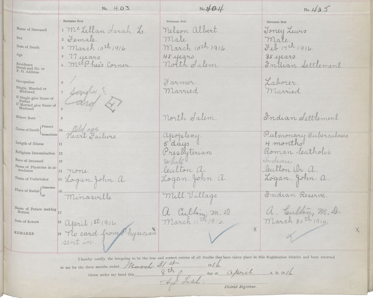 Male Death Registration: Year: 1916 book: 36 page: 163 number: 405