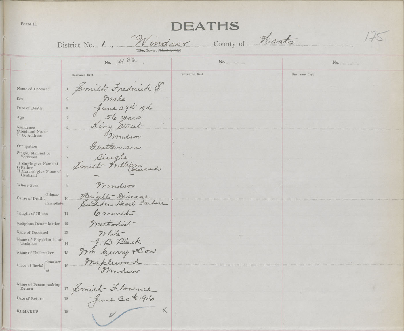 Male Death Registration: Year: 1916 book: 36 page: 175 number: 432