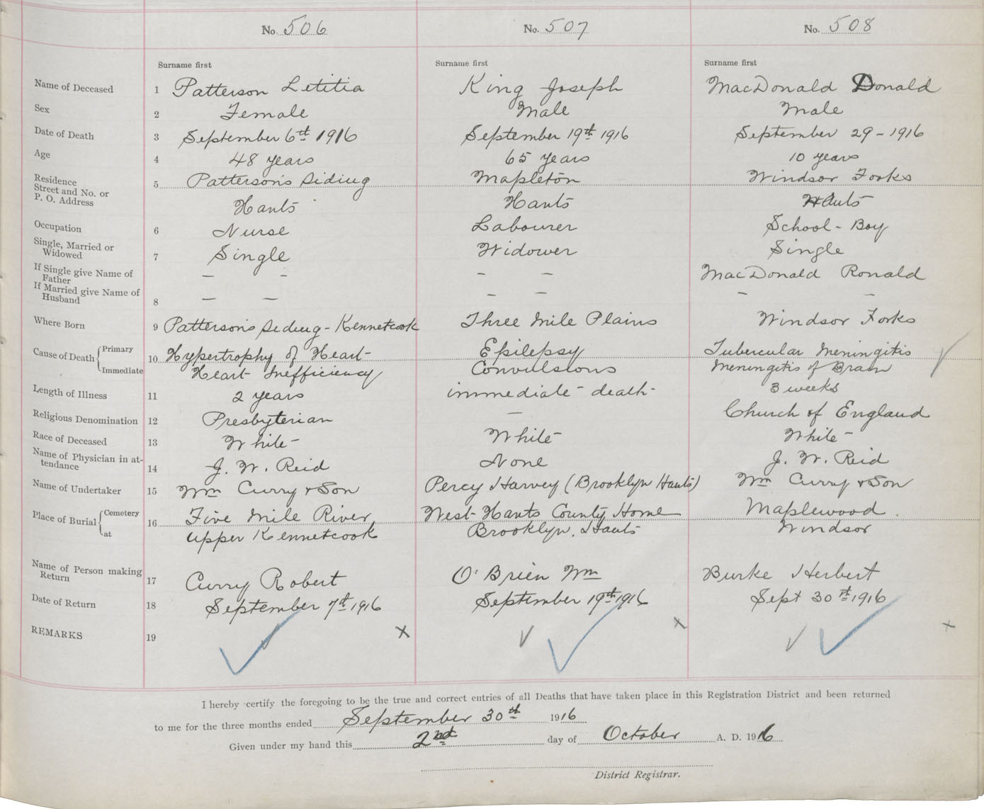 Male Death Registration: Year: 1916 book: 36 page: 207 number: 508