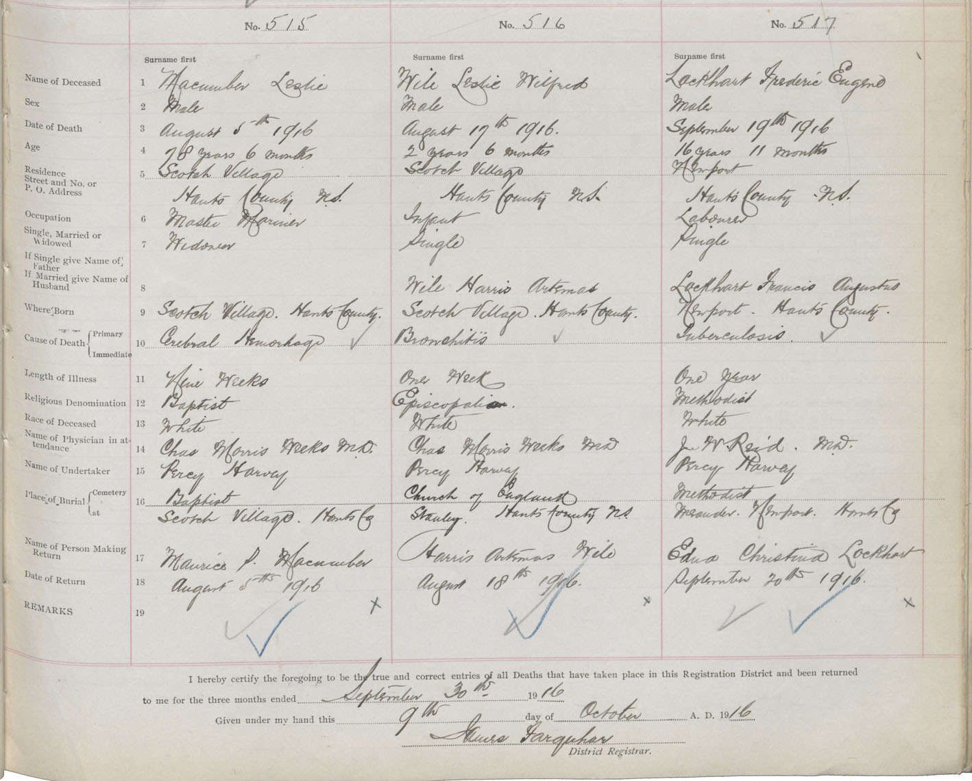 Male Death Registration: Year: 1916 book: 36 page: 211 number: 517