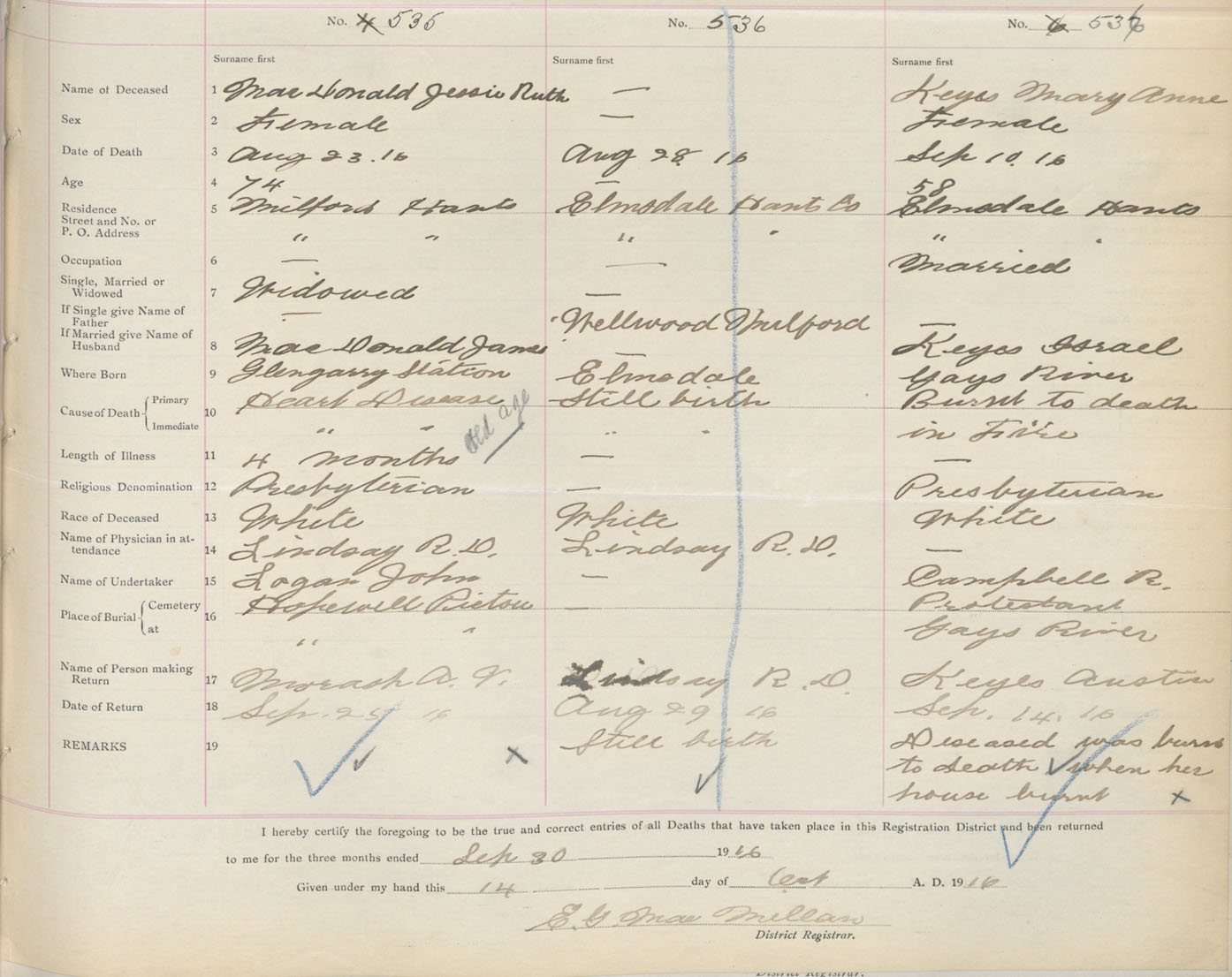 Female Death Registration: Year: 1916 book: 36 page: 223 number: 536