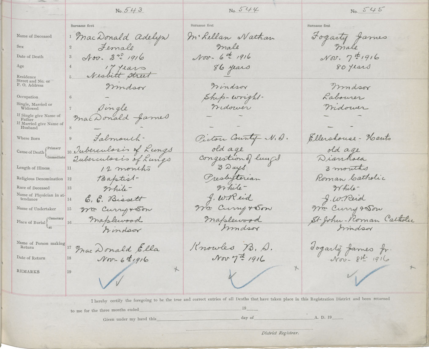 Male Death Registration: Year: 1916 book: 36 page: 229 number: 545
