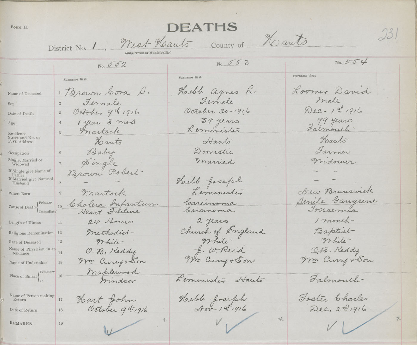 Male Death Registration: Year: 1916 book: 36 page: 231 number: 554