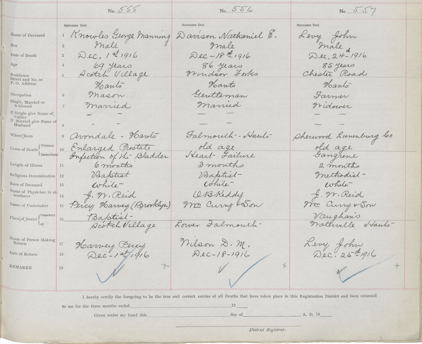 Male Death Registration: Year: 1916 book: 36 page: 231 number: 557