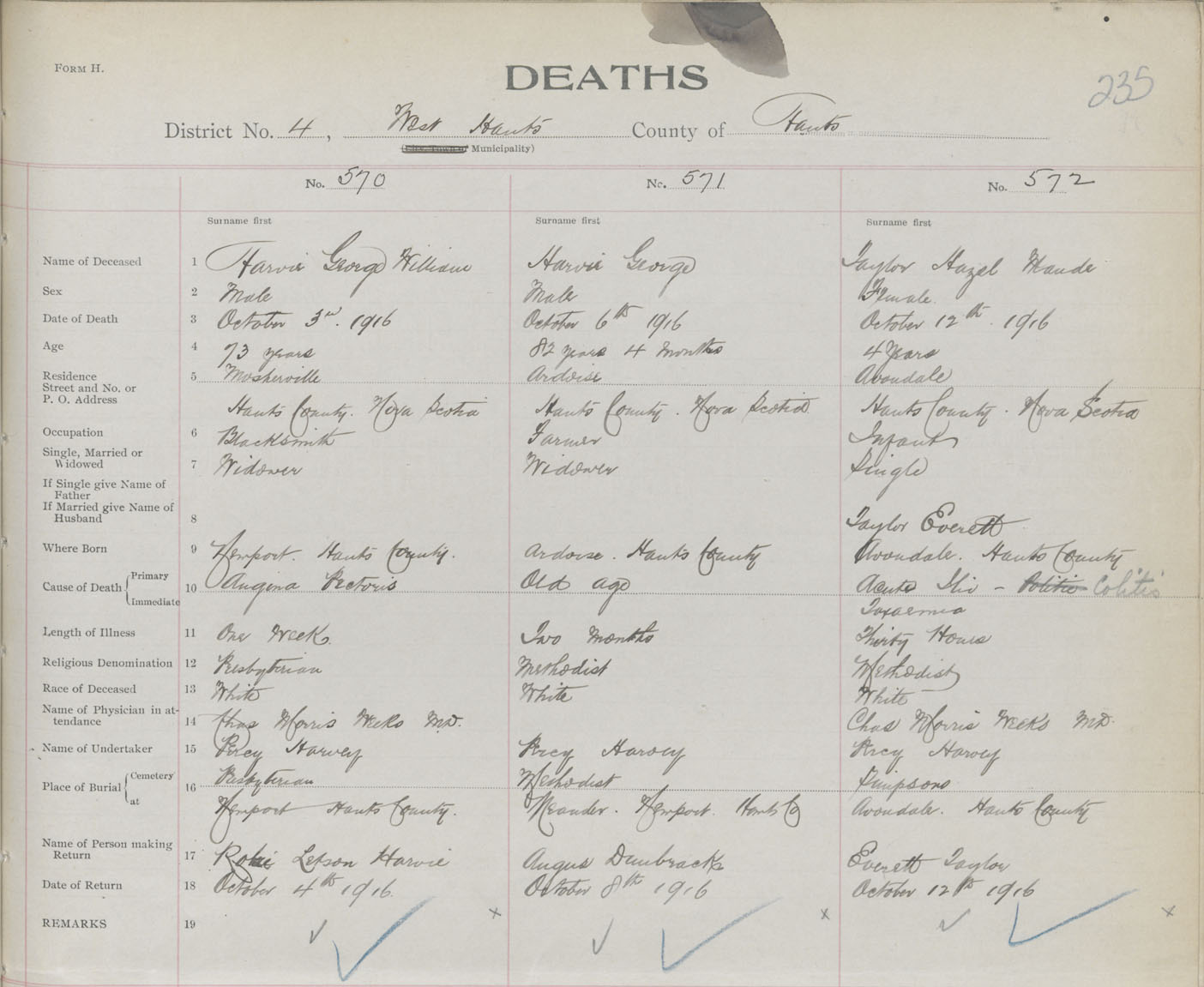 Female Death Registration: Year: 1916 book: 36 page: 235 number: 572