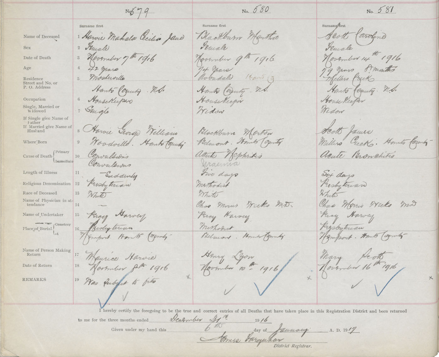 Female Death Registration: Year: 1916 book: 36 page: 236 number: 581