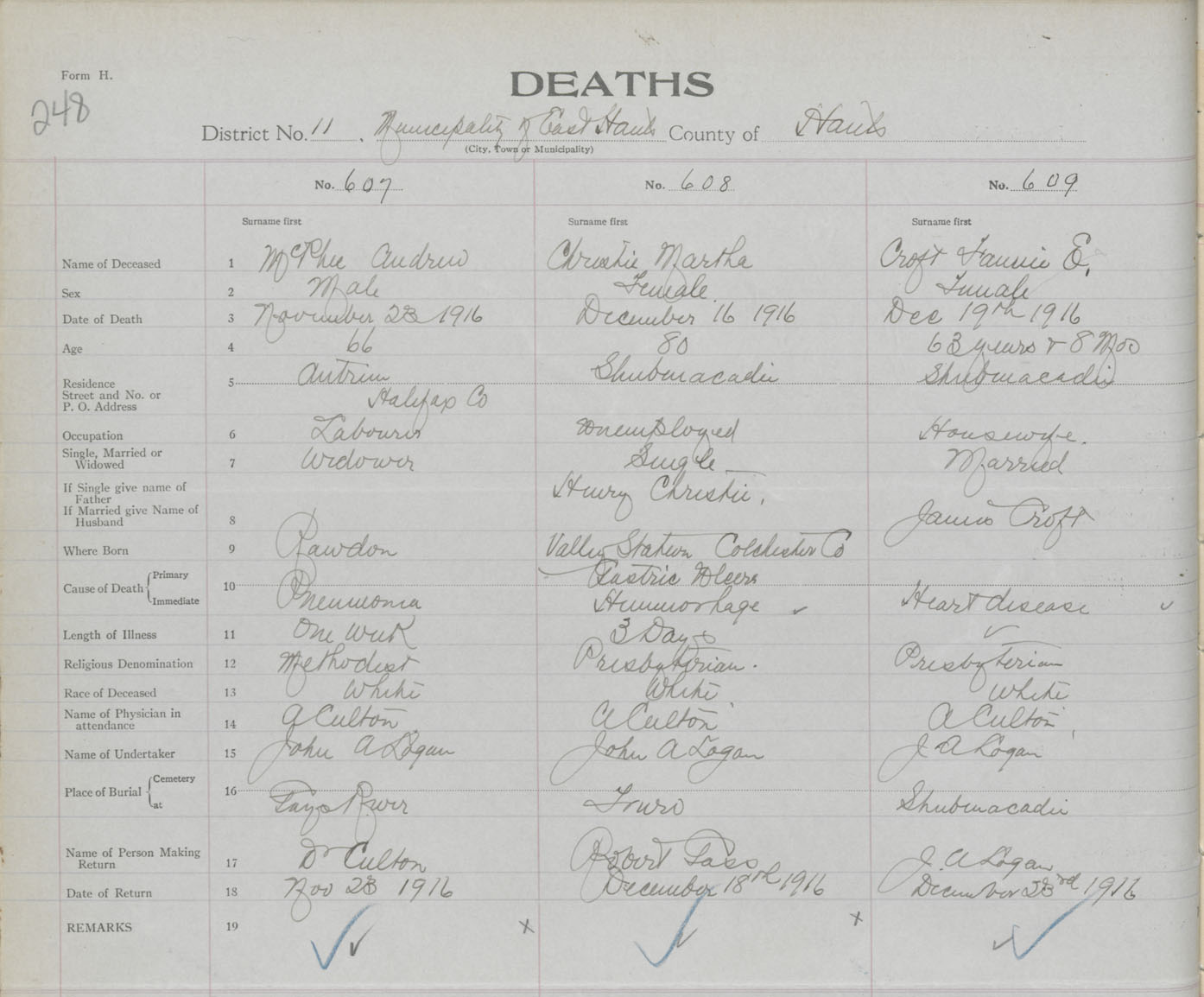Female Death Registration: Year: 1916 book: 36 page: 248 number: 609