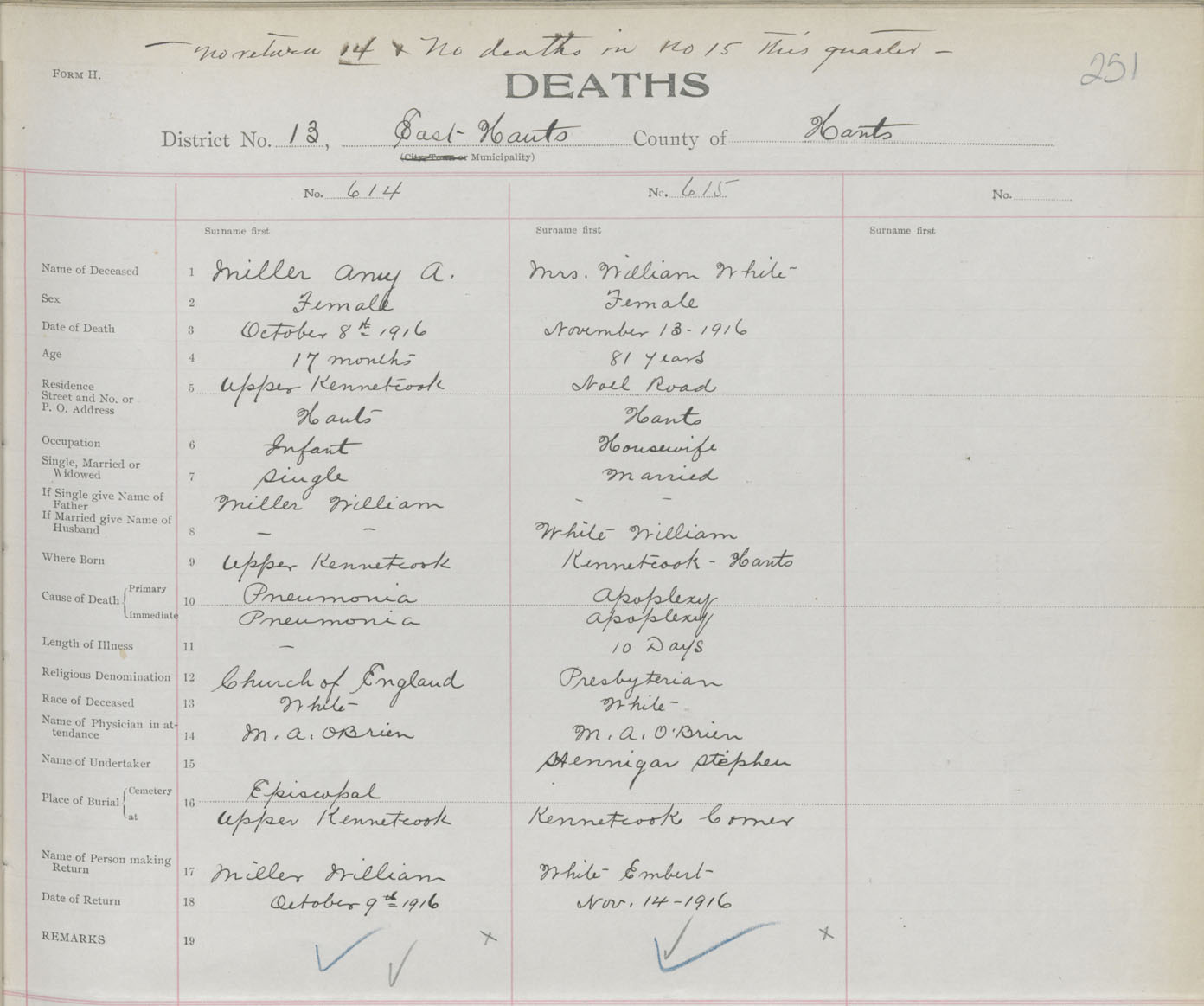 Female Death Registration: Year: 1916 book: 36 page: 251 number: 615