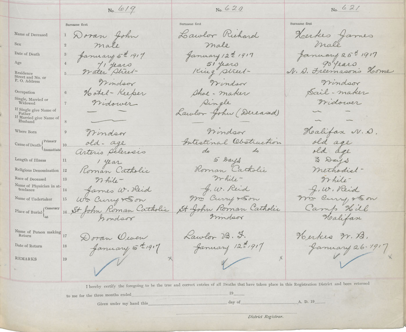Male Death Registration: Year: 1917 book: 36 page: 253 number: 621