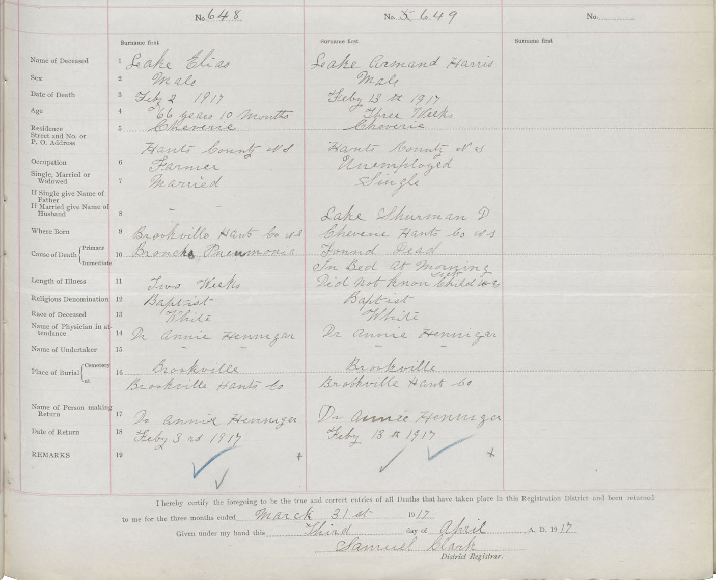 Male Death Registration: Year: 1917 book: 36 page: 259 number: 649