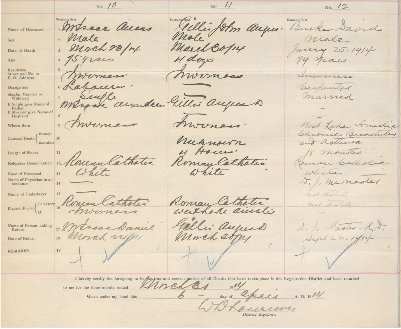 Male Death Registration: Year: 1914 book: 37 page: 2 number: 10