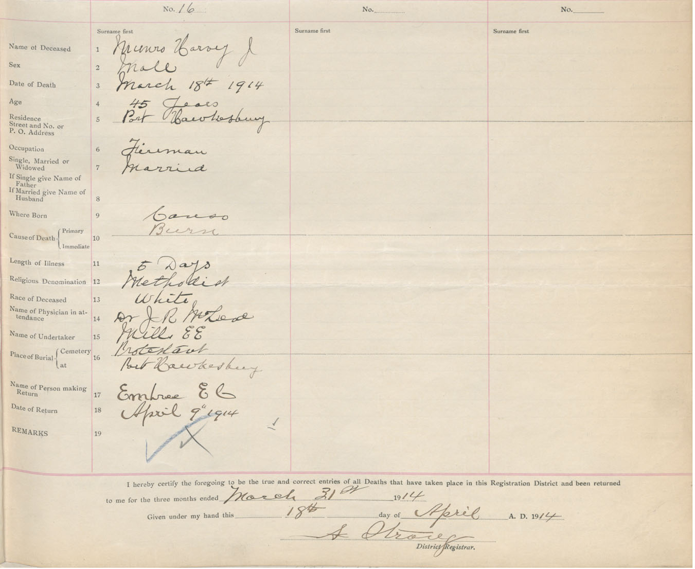 Male Death Registration: Year: 1914 book: 37 page: 5 number: 16