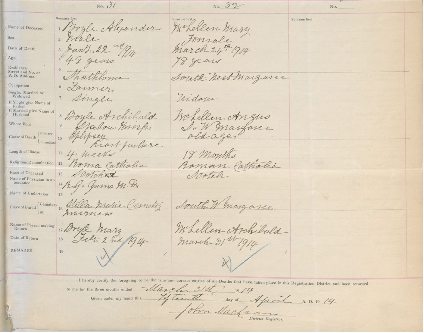 Male Death Registration: Year: 1914 book: 37 page: 15 number: 31