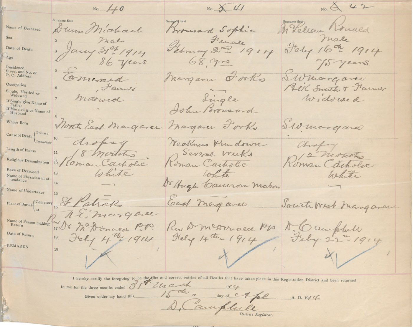 Male Death Registration: Year: 1914 book: 37 page: 19 number: 40