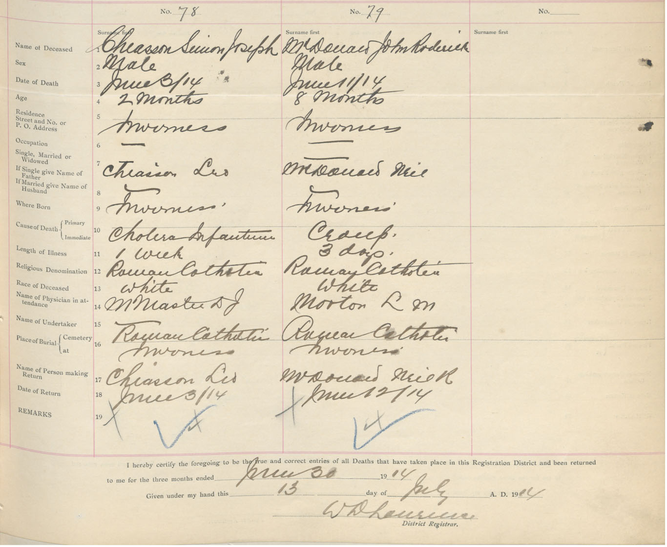 Male Death Registration: Year: 1914 book: 37 page: 37 number: 78