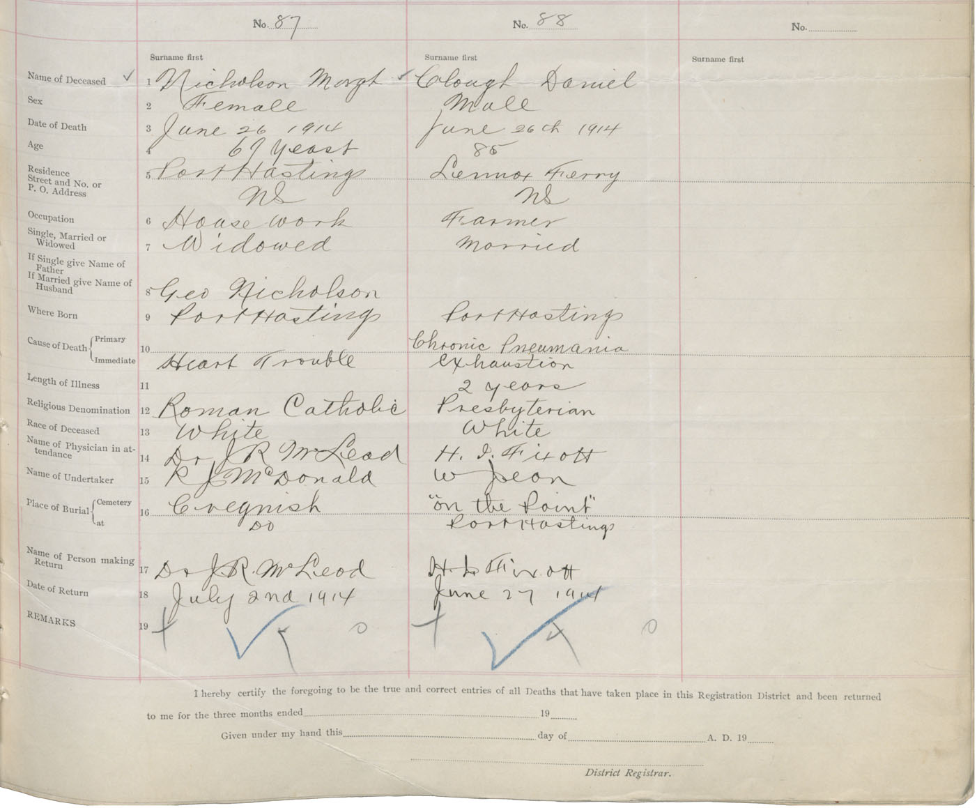 Female Death Registration: Year: 1914 book: 37 page: 41 number: 87
