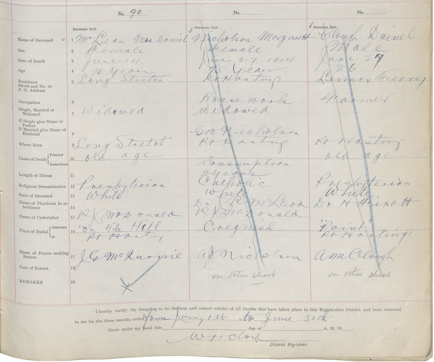 Female Death Registration: Year: 1914 book: 37 page: 43 number: 90