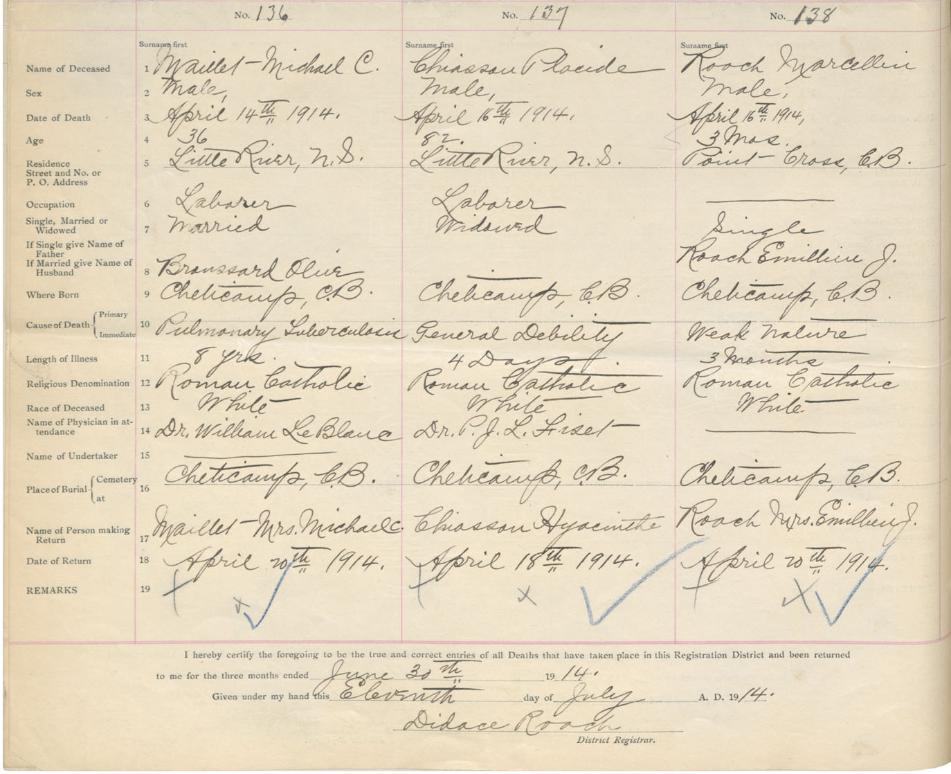 Male Death Registration: Year: 1914 book: 37 page: 62 number: 136