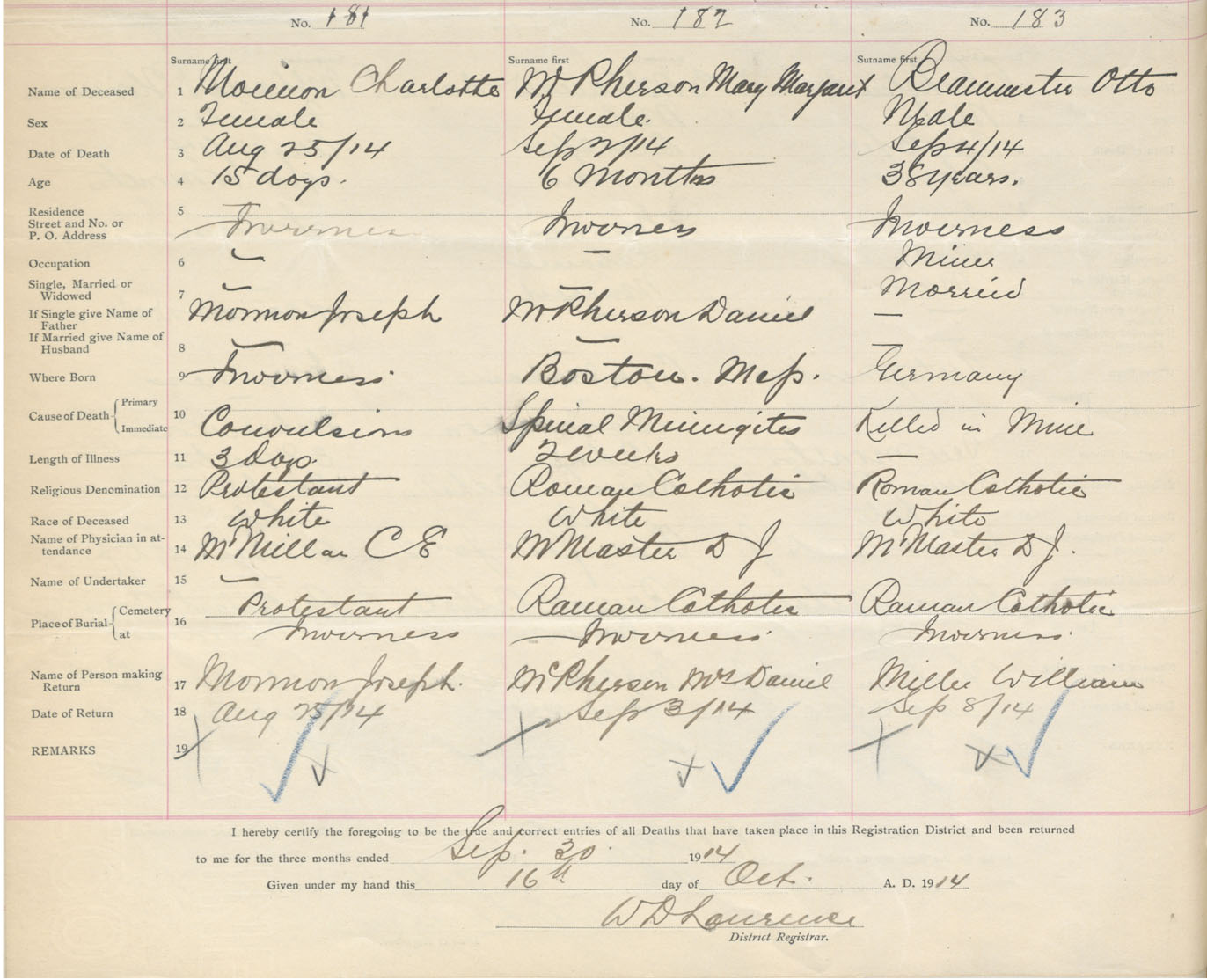 Female Death Registration: Year: 1914 book: 37 page: 76 number: 181