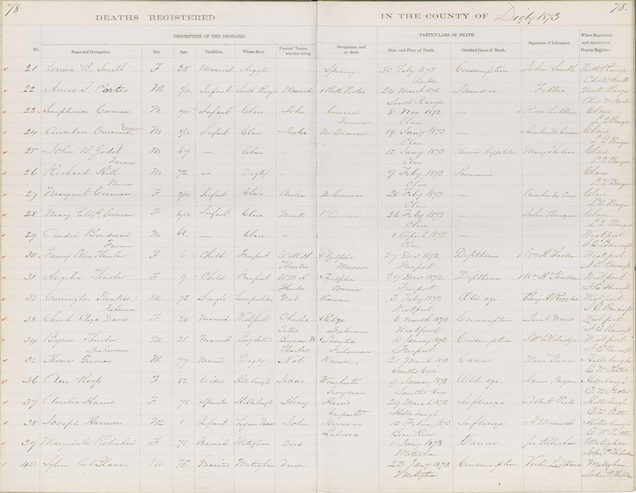 Death Registration: Year: 1873 book: 1806 page: 78 number: 40