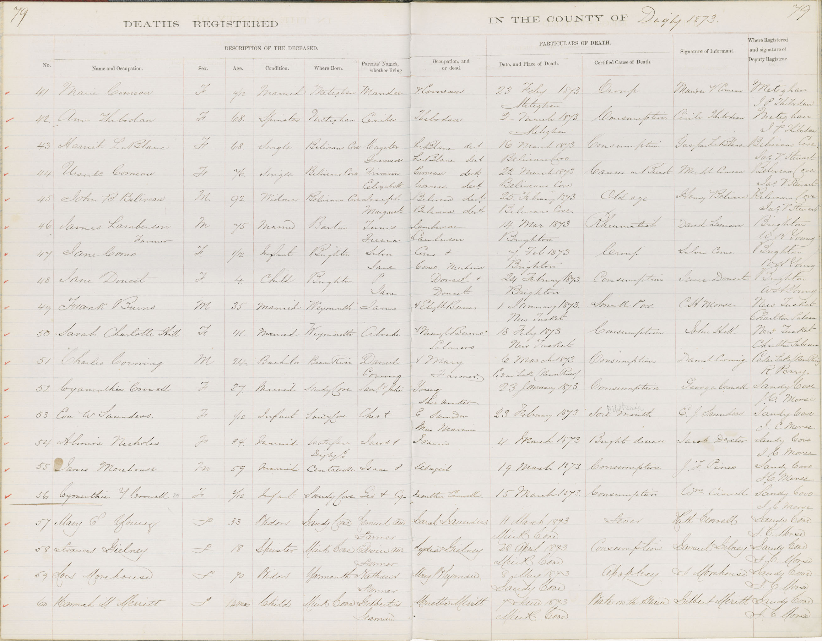 Death Registration: Year: 1873 book: 1806 page: 79 number: 59
