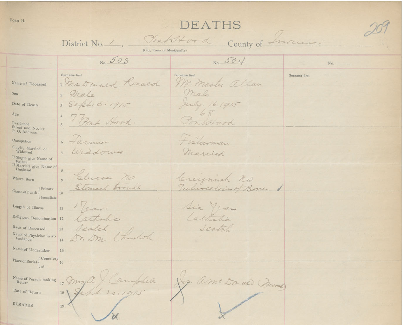 Male Death Registration: Year: 1915 book: 37 page: 209 number: 503