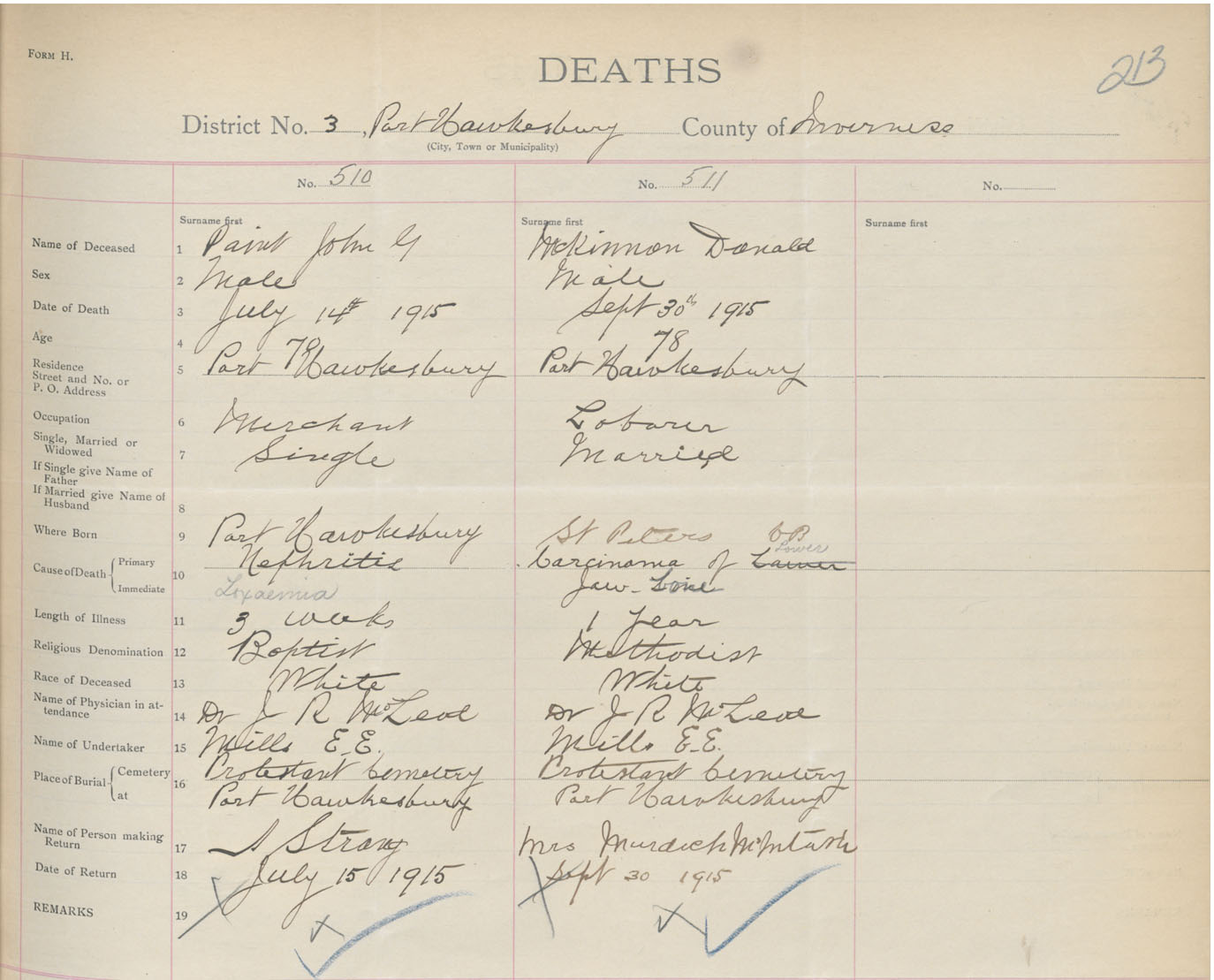 Male Death Registration: Year: 1915 book: 37 page: 213 number: 510