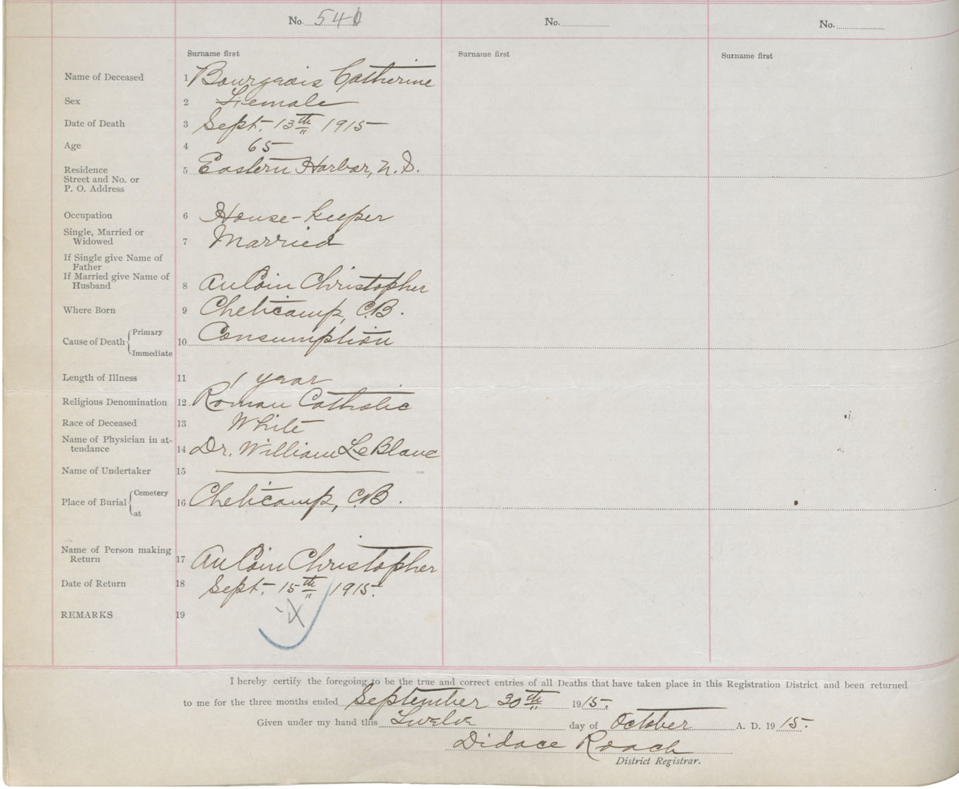 Death Registration: Year: 1915 book: 37 page: 226 number: 541