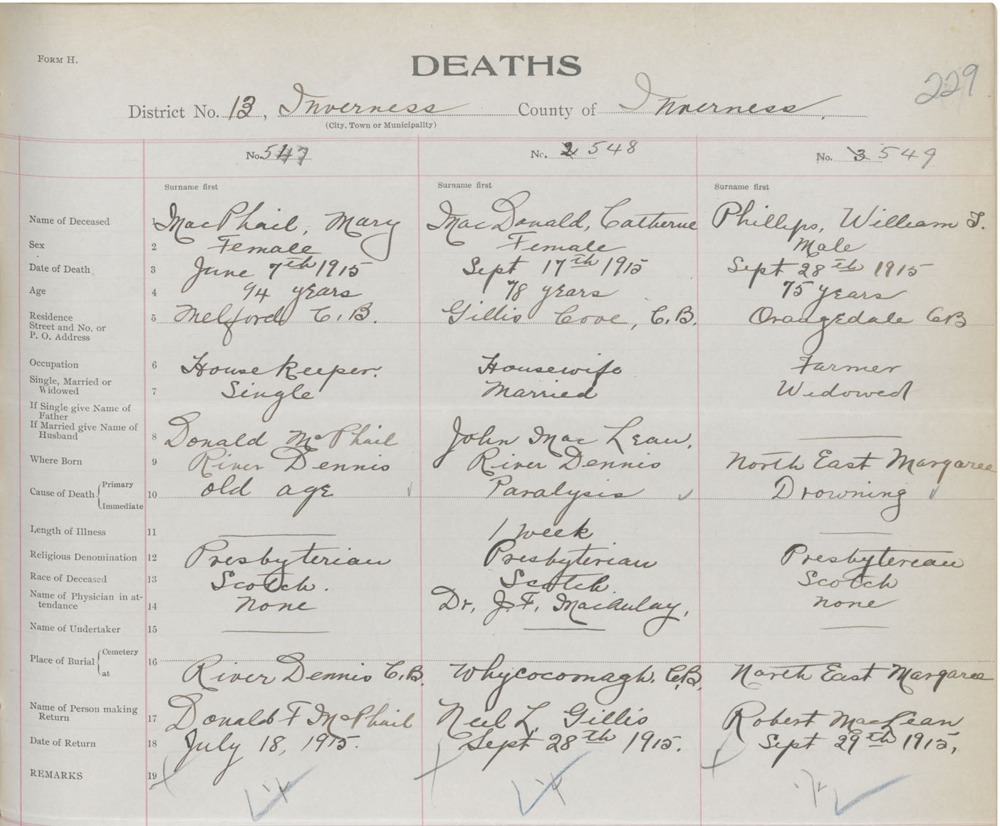 Death Registration: Year: 1915 book: 37 page: 229 number: 548