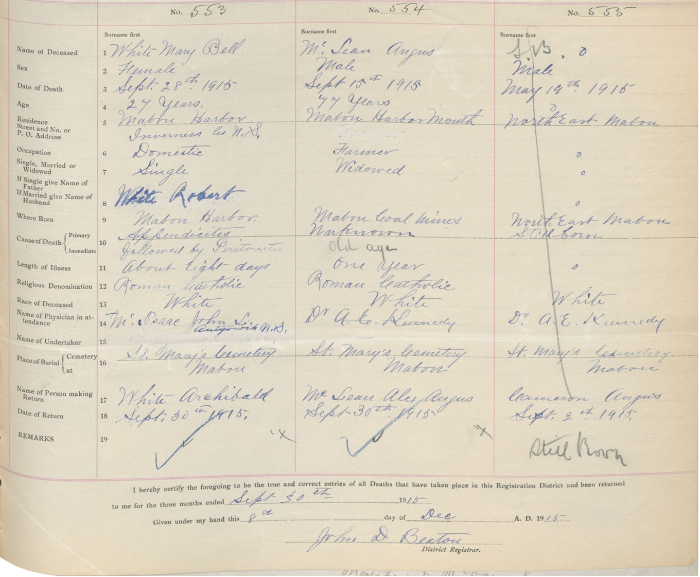 Death Registration: Year: 1915 book: 37 page: 231 number: 553