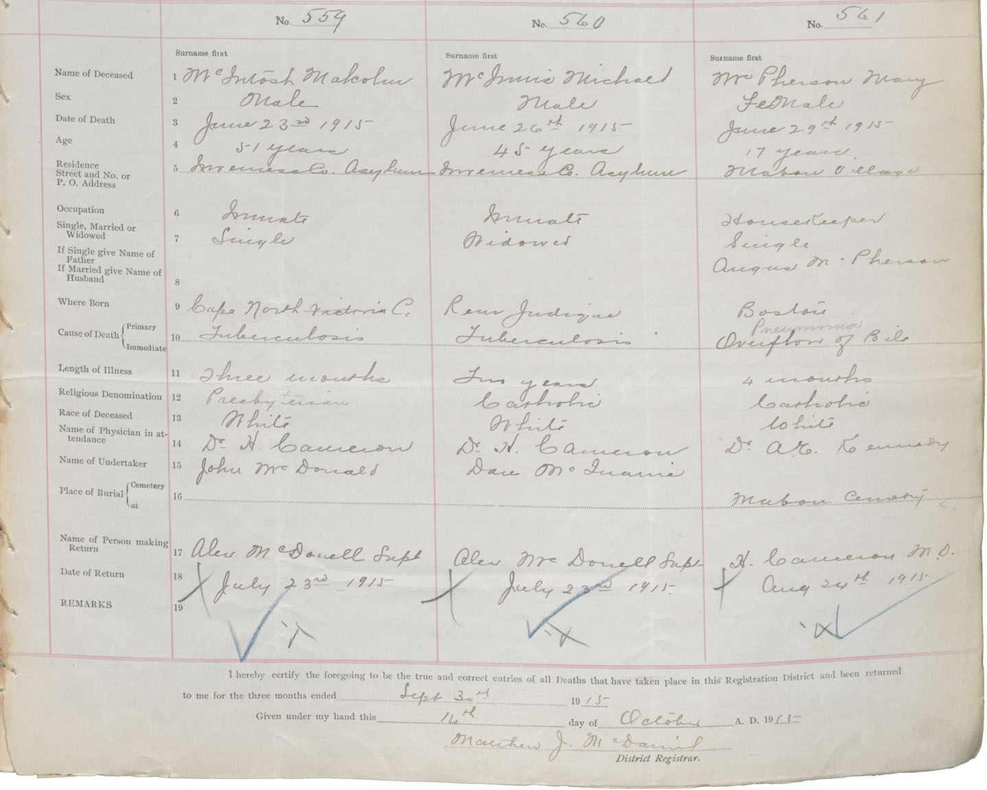 Death Registration: Year: 1915 book: 37 page: 233 number: 559
