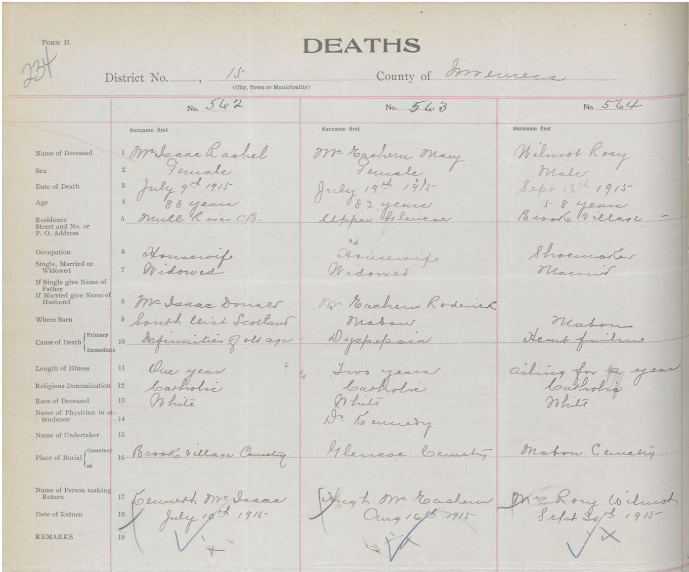 Death Registration: Year: 1915 book: 37 page: 234 number: 562