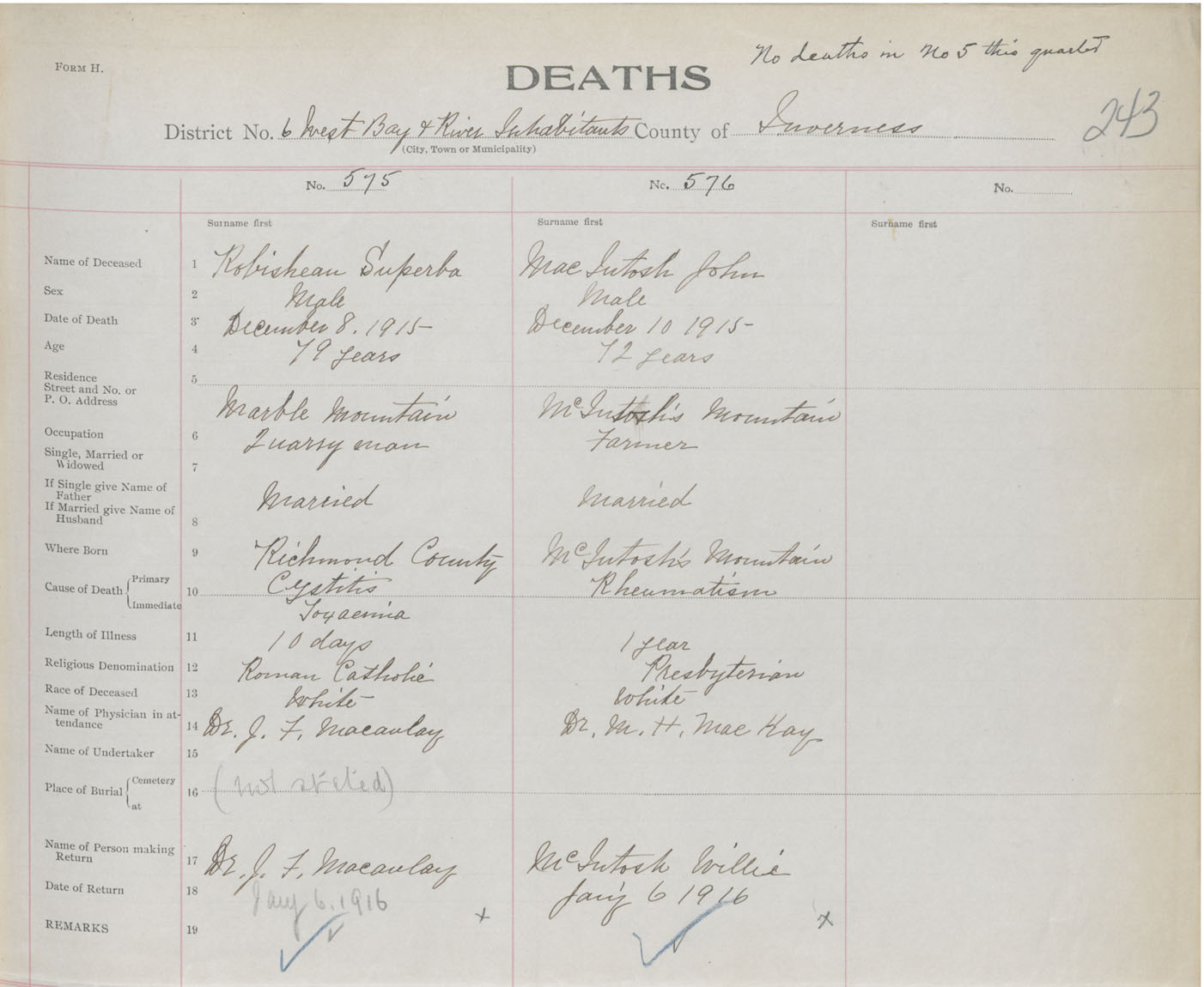 Death Registration: Year: 1915 book: 37 page: 243 number: 575