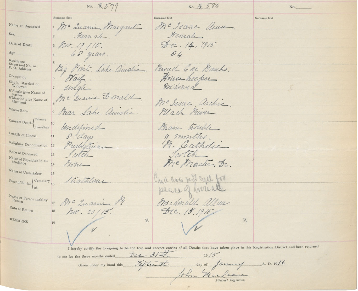 Death Registration: Year: 1915 book: 37 page: 245 number: 579