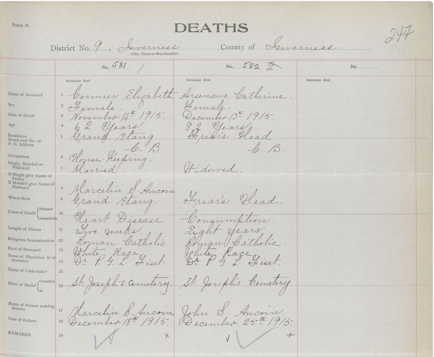 Death Registration: Year: 1915 book: 37 page: 247 number: 581