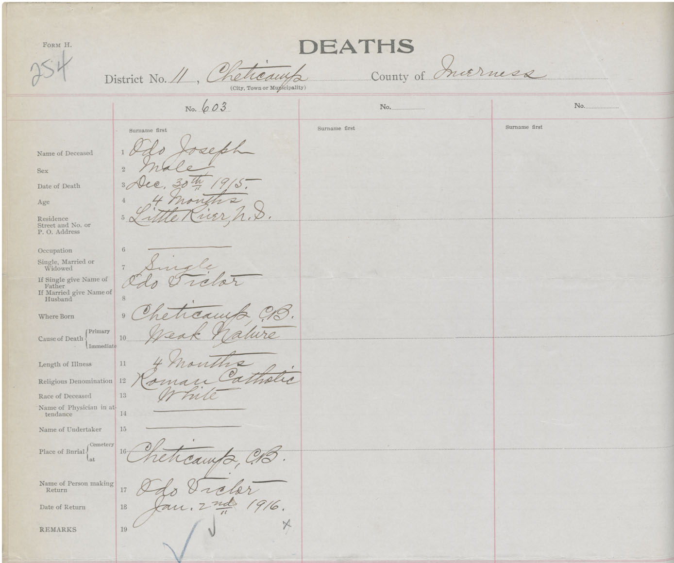 Death Registration: Year: 1915 book: 37 page: 254 number: 603