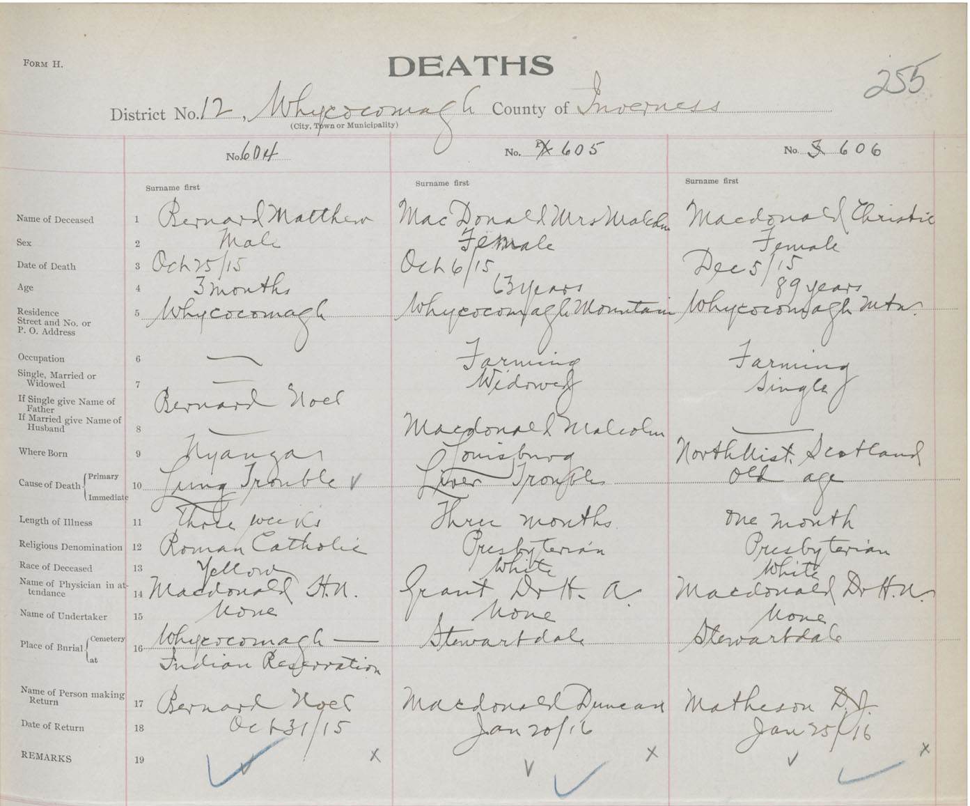 Death Registration: Year: 1915 book: 37 page: 255 number: 604