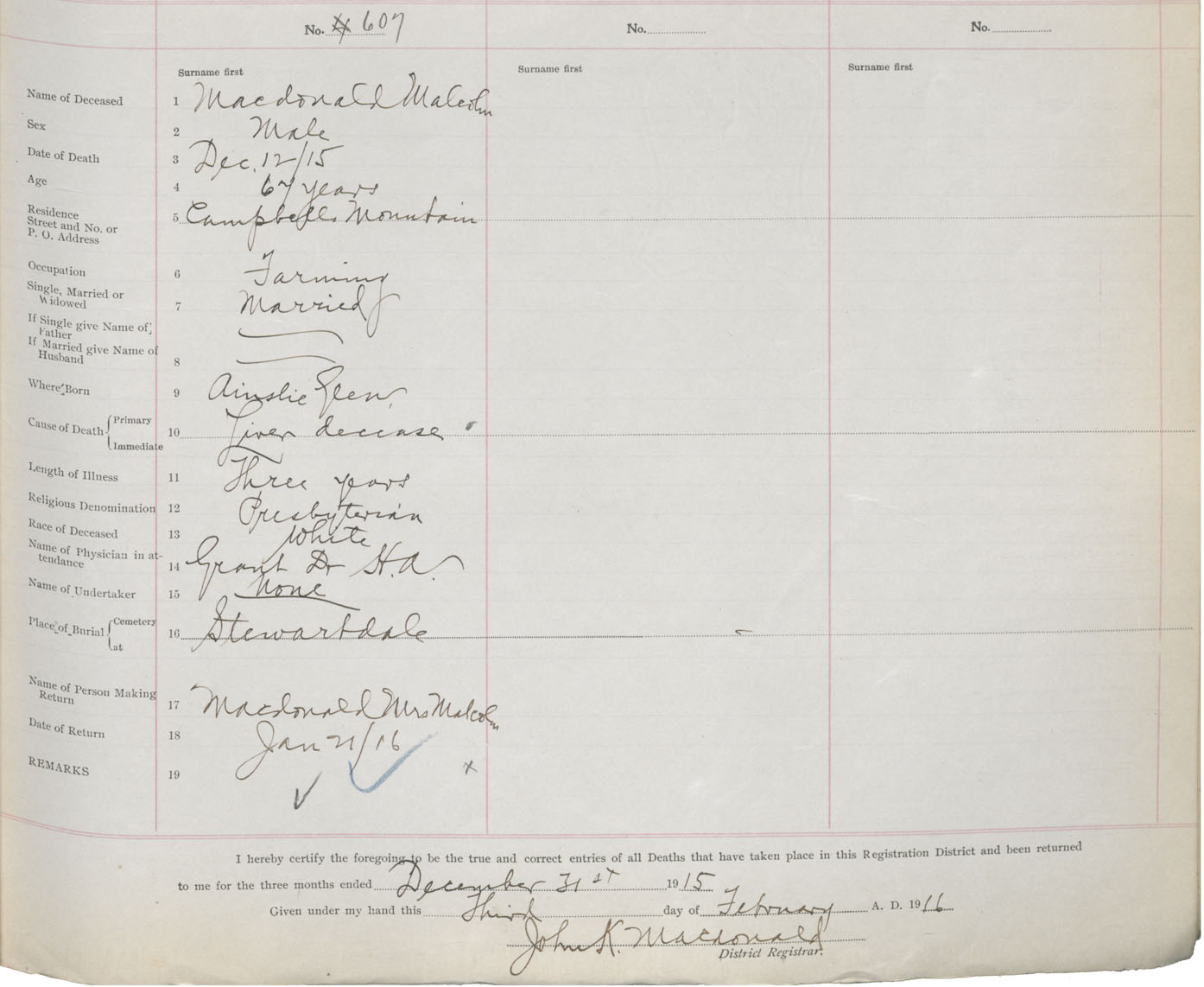 Death Registration: Year: 1915 book: 37 page: 255 number: 607
