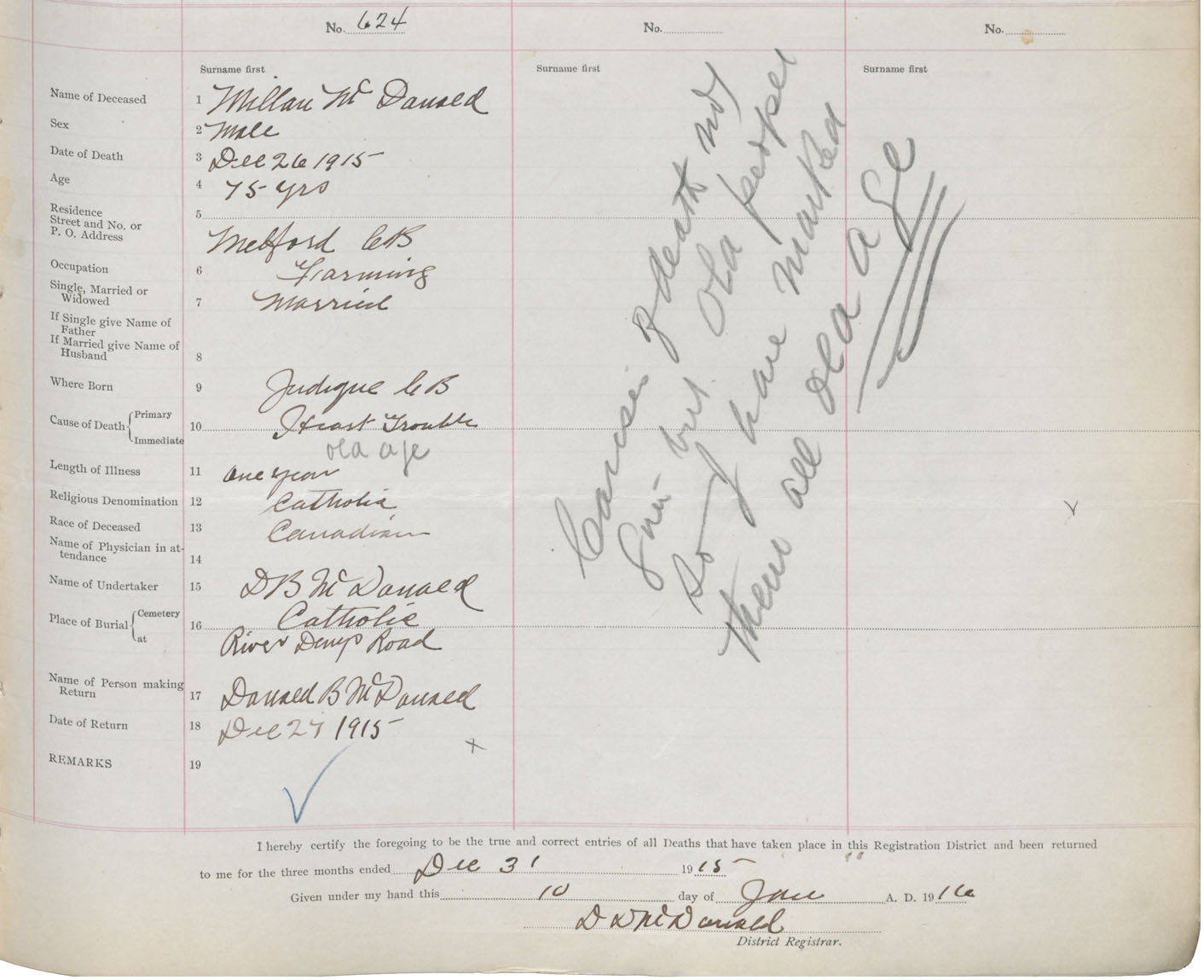Male Death Registration: Year: 1915 book: 37 page: 265 number: 624