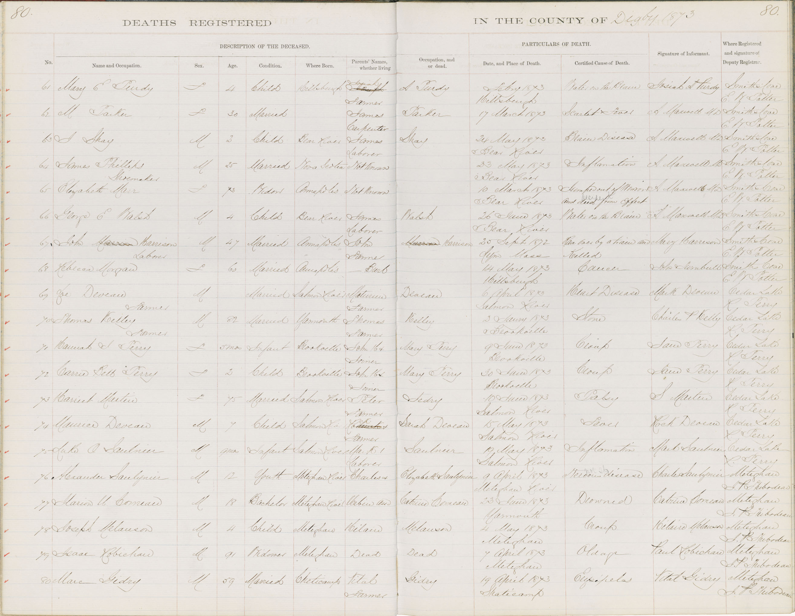 Death Registration: Year: 1873 book: 1806 page: 80 number: 79