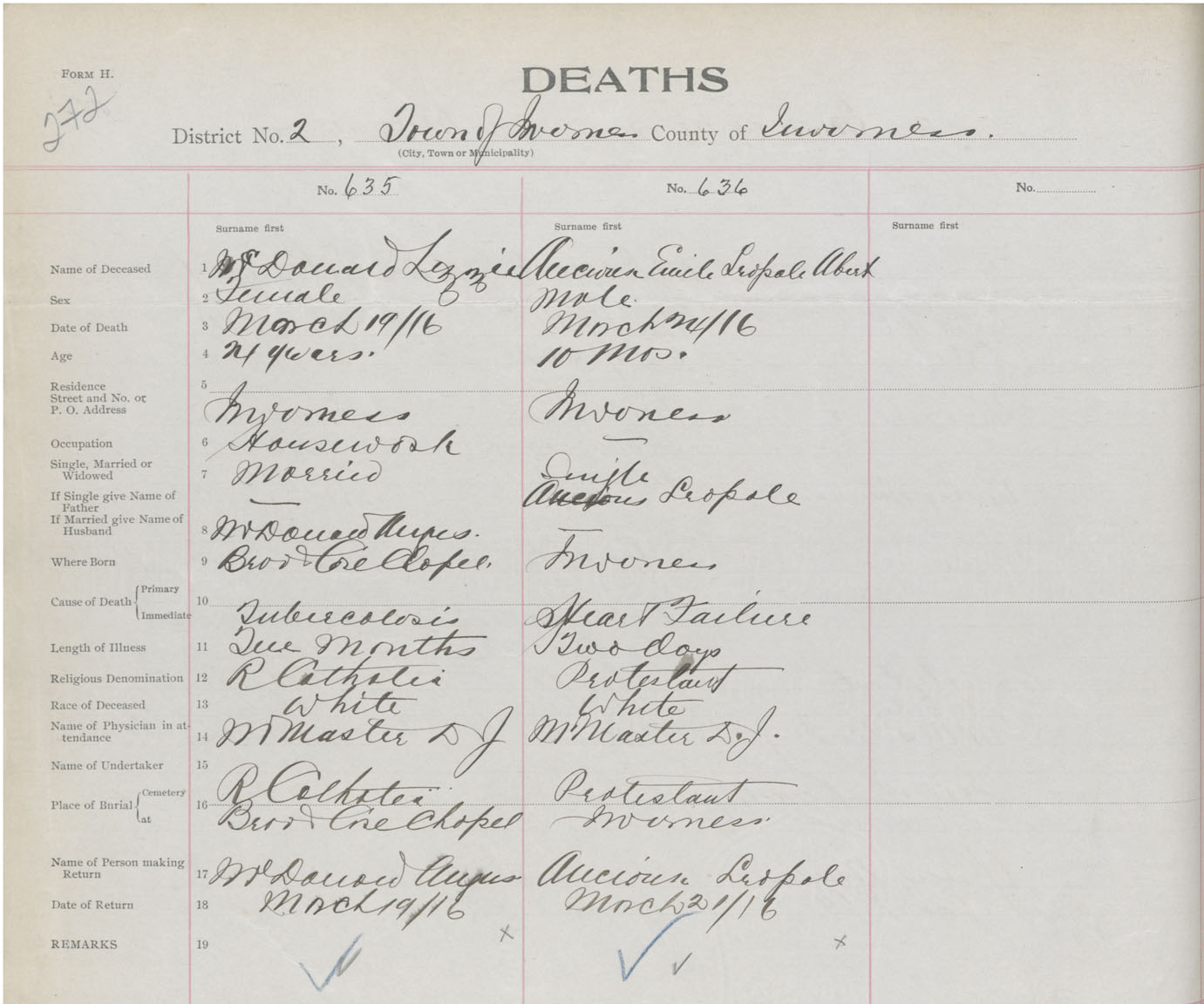 Death Registration: Year: 1916 book: 37 page: 272 number: 635