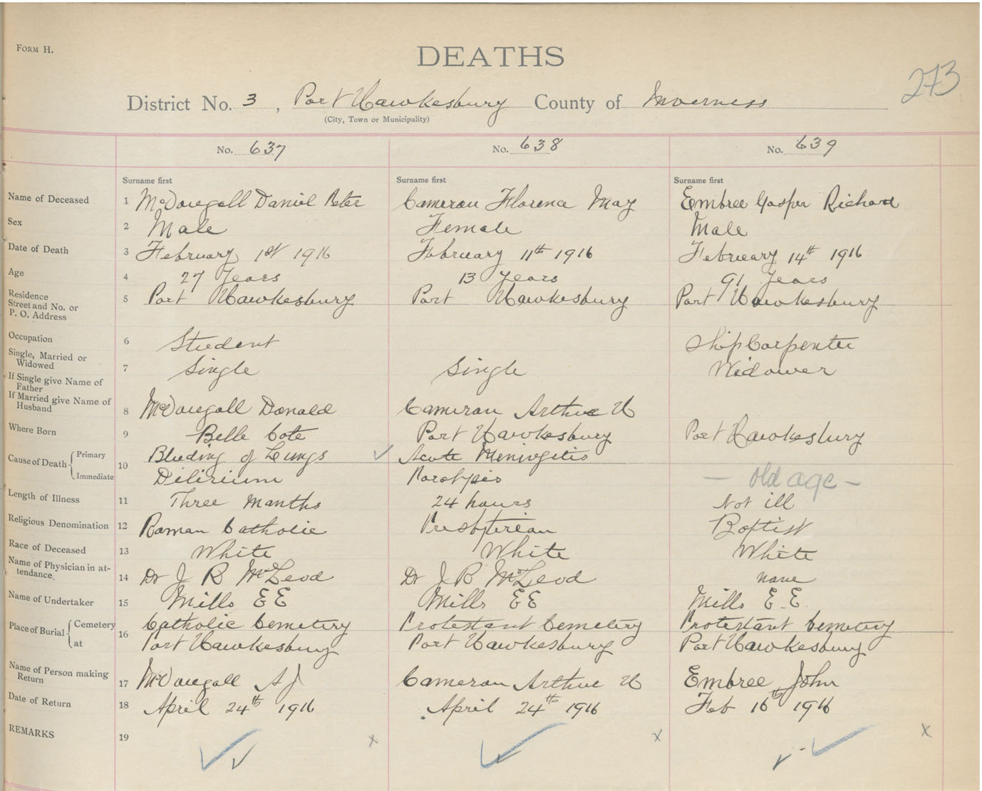 Death Registration: Year: 1916 book: 37 page: 273 number: 637