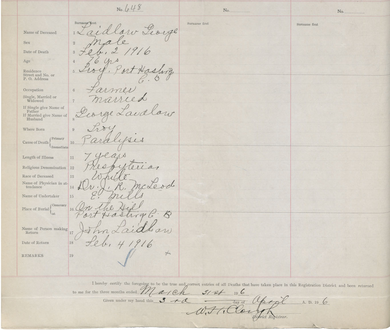 Death Registration: Year: 1916 book: 37 page: 276 number: 648