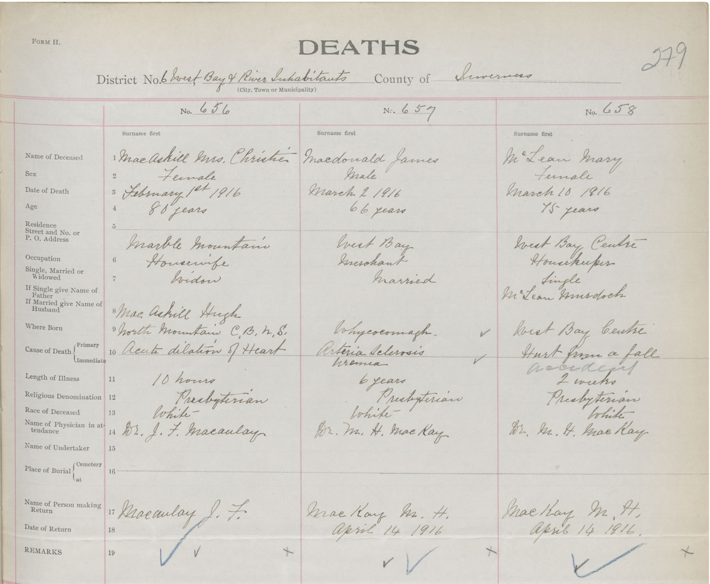 Death Registration: Year: 1916 book: 37 page: 279 number: 656